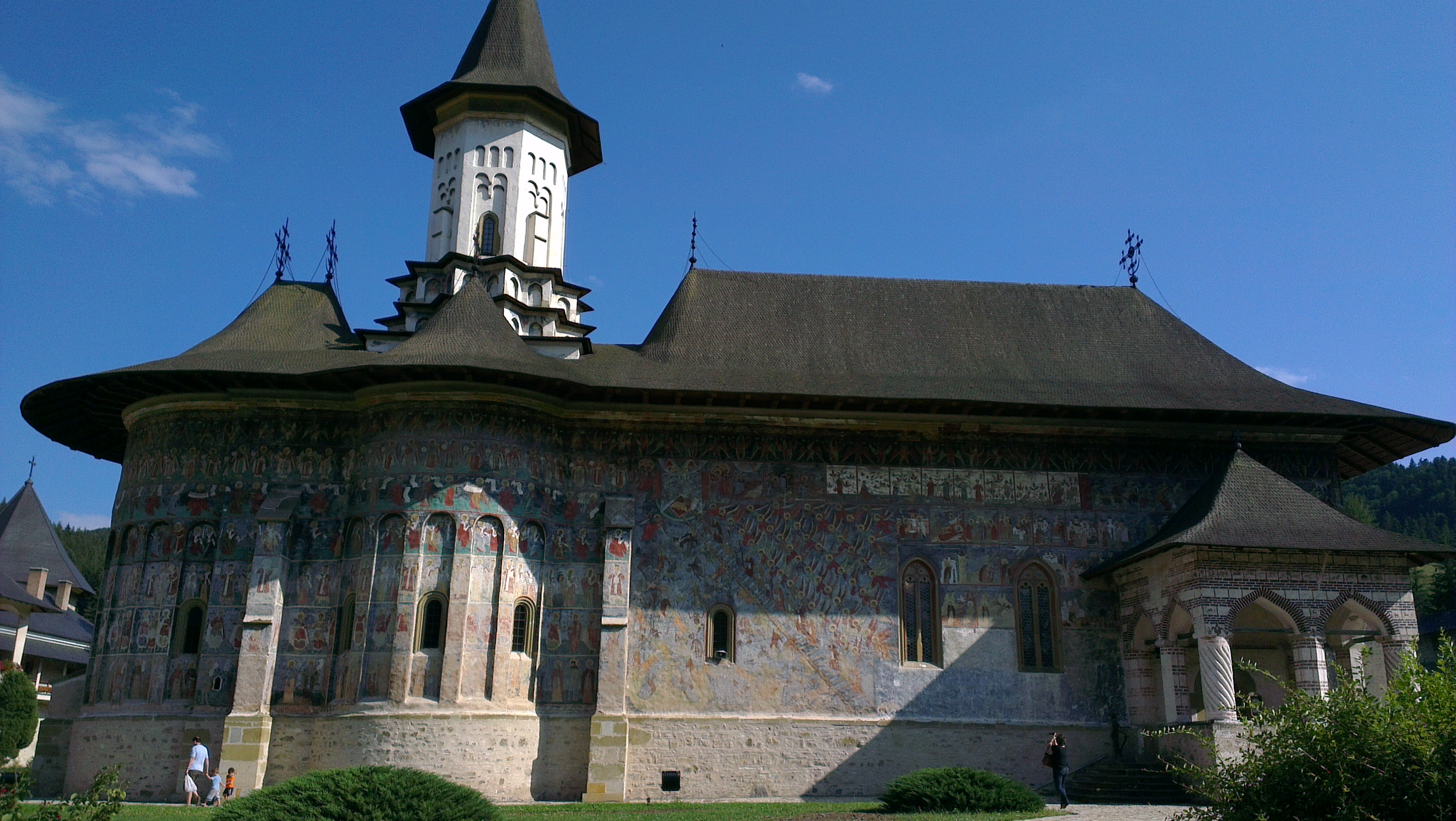 Op onze rustplek op 600m eten we een watermeloen en een lekker ijsje. We maken de balans op en kijken waar we kunnen wassen. In Sucevita zou dat moeten lukken. We krijgen nog een flinke klim tot 1109m voor onze kiezen van tien kilometer met grote delen van 8%. Als twee gekken rijden we het laatste stuk omhoog naar de pas, Pasul Ciumarna. Daarna de helm weer op en uitkijken met afdalen door de slechte weg. In Sucevita vinden we een motel waar ze onze kleren willen wassen. We kunnen alleen niet met onze CreditCard betalen dus we moeten op zoek naar een bank. Richard heeft te horen gekregen dat 4 kilometer verder een bank zit. We stappen na onze was af te hebben gegeven op de fiets. Vlak naast ons hotel ligt een prachtig klooster met in het midden een enorme kerk vol met muurschilderingen in elk hoekje van het gebouw. Erg indrukwekkend.